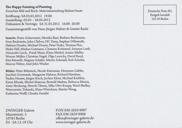 Works: Peter Böhnisch, Nicole Eisenman, Hermann Gabler, Joachim Grommek, Margarete Hahner, Richard Hawkins, Nadira Husain, Jürgen Kisch, Jochen Klein, Michael Krebber, Kiron Khosla, Michel Majerus, Bertold Mathes, Rebecca Morris, Anne Neukamp, Henrik Olesen, Silke Otto-Knapp, Ward Shelley, Wawrzyniec Tokarski, Klaus Winichner, Martin Wong, Katharina Wulff, Claudia Zweifel